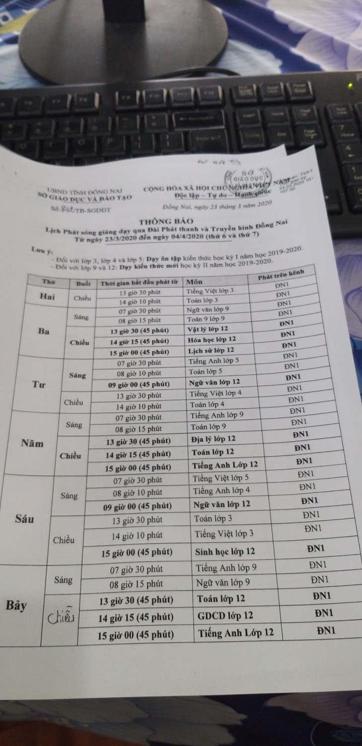 LỊCH PHÁT SÓNG CHƯƠNG TRÌNH DẠY HỌC TRÊN ĐÀI PHÁT THANH VÀ TRUYỀN HÌNH