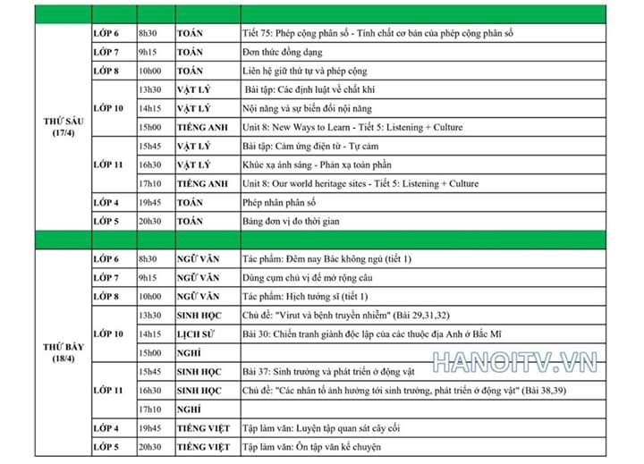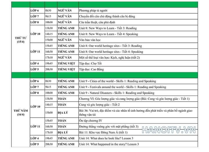 DỰ KIẾN NỘI DUNG CÁC BÀI GIẢNG " DẠY HỌC TRÊN TRUYỀN HÌNH "TRÊN KÊNH H2