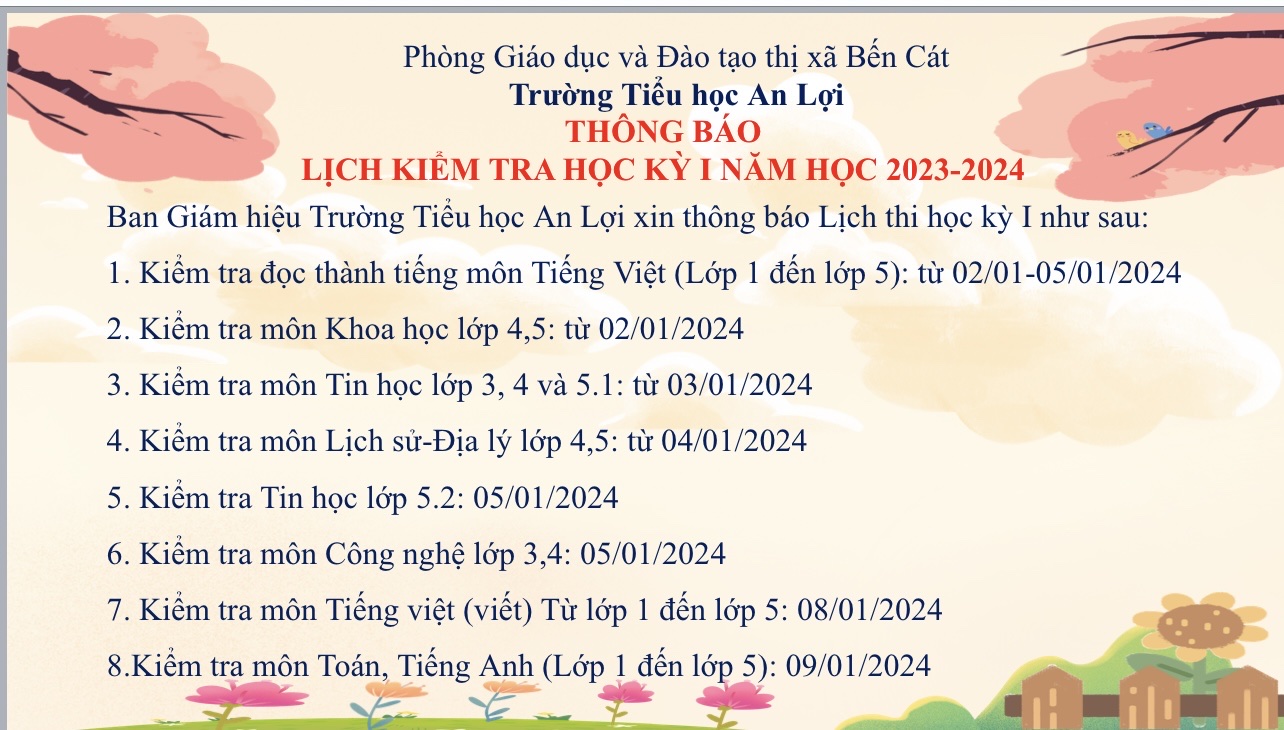 LỊCH KIỂM TRA HỌC KỲ I NĂM HỌC 2023-2024